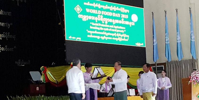 SEARCA Director Gil C. Saguiguit Jr. accepted the award presented by Myanmar President U Thein Sein at the country’s commemoration of World Food Day held on 16 October at Yezin Agricultural University (YAU), according to a press release.