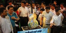 A guitar, with a painting by three 88-generation student leaders, was sold for 58.8 million kyat (US$ 66,627) at a fund-raising music concert in...