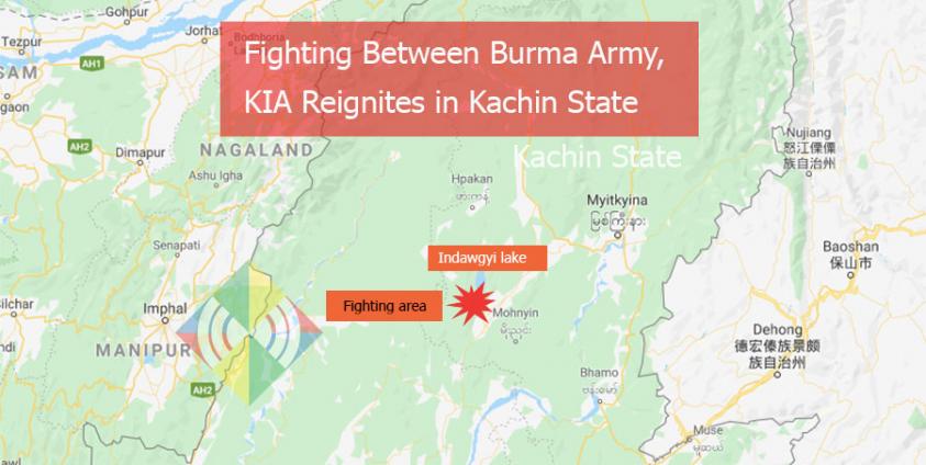 Fighting between the Burma Army and forces belonging to the Kachin Independence Army (KIA) resumed on Monday in Kachin State’s Mohnyin Township following the expiry of the military’s nine-month unilateral ceasefire declaration.