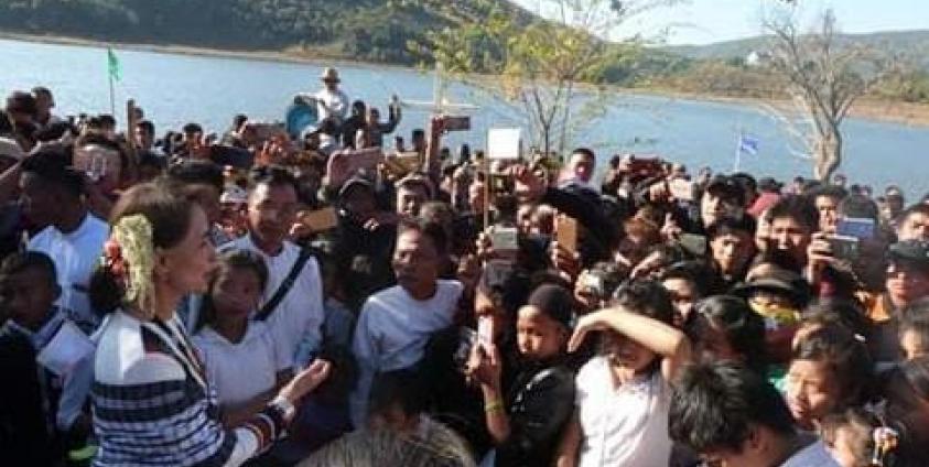 The State Counsellor arrived in Rihkhawdar on January 20 as part of her visit to Chin State, and met with elders in the town. She was welcomed by dancing youth, and donated 100 bags of rice and 100 viss of cooking oil. The meeting she held there was not open to the public.