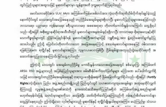 “Various ethnic groups in Myanmar, including the Kokang, Ta'ang and Rakhine people are still fighting for the national liberation struggle individually or collectively, to escape from the Junta’s reign, in order to achieve national equality, self-determination and the right to create our own destiny. All of our organizations will work together harmoniously and continue to fight for the revolution, until we have achieved our common military and political goals”, according to the joint memorandum of the three ethnic parties and EAOs.