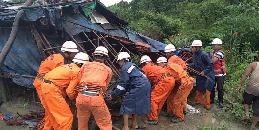 The hammering rain sank 24 houses in Thiho Aye village, 5 houses in Ywar Tharyar village, five houses in Kan Pyin Tharsi village, and 12 houses in Waitharli village.