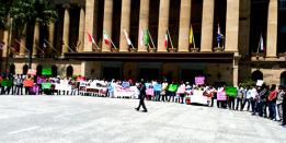 The Queensland Rohingya community gathered in front of King George Square in Brisbane, Australia on...
