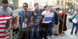 Around 30 Burmese nationals, most of them Arakanese, staged a demonstration in front of Thai...