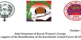In statement release on Sunday 19th October, an alliance of Karen women’s organisations gave their...