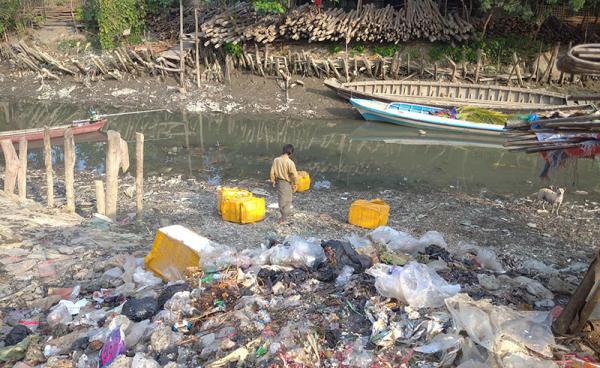 Zaychuang Creek, near the central market in Arakan State’s Minbya Township, is getting shallow and...