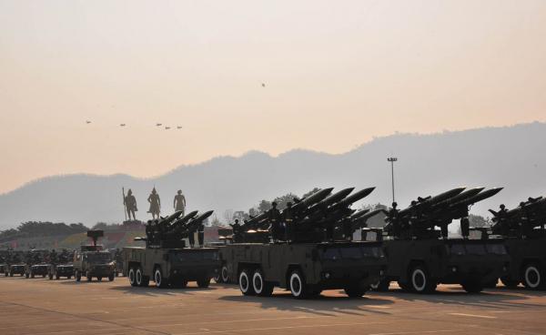 The jet fighters of Burmese Army or SAC airforce bombed over the key business area of Thapyu...