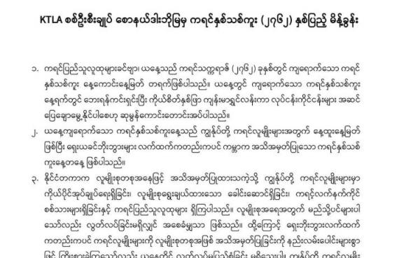 The Commander-in-Chief of the Kawthoolei Army (KTLA), Saw Nerdah Mya, urged the Karen people to...