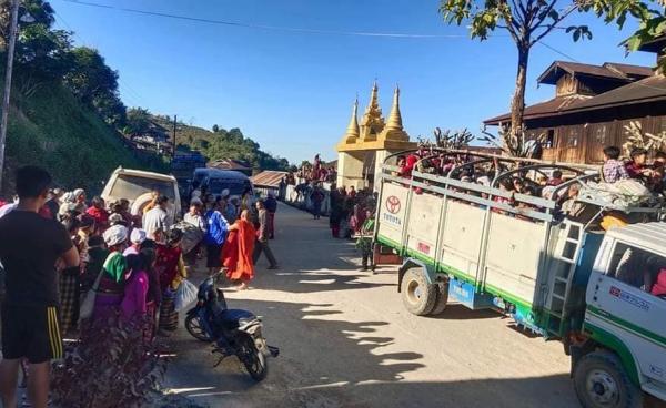 People fleeing from the war-zone have taken refuge in the town of Namhsan, northern Shan State are...