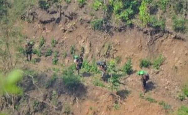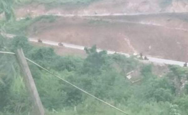 An estimated 300 soldiers of the junta are marching to the west of Demawso Township in Karenni State on the morning of May 9th, crossing Sibu village...