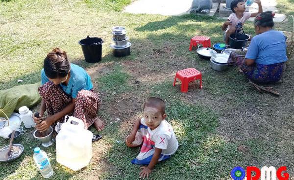 Hnin Nwe - Facing food shortages, more than 100 internally displaced people (IDPs) sheltering at Alae Kyun village in the Dar Let Chaung village-...