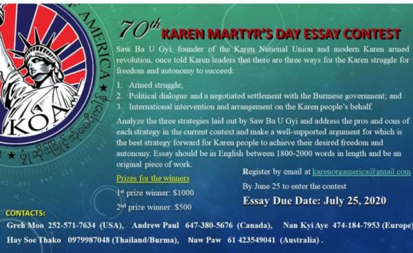 The Karen Organization of America (KOA) is organizing an international essay competition among Karen students and young people. The theme of the...