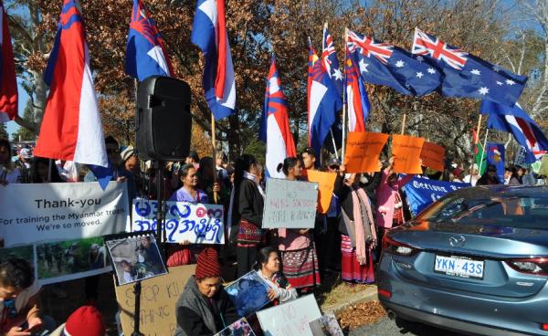 The Australian Karen Organization rallied outside the Burmese Embassy in Canberra to protest against the Burma Army’s recent attacks on villages in...
