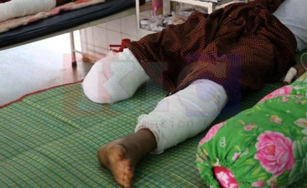 A displaced villager from the Mae Tha Wor area of Hlaingbwe Township, Karen State stepped on a landmine as he and other villagers returned to their...