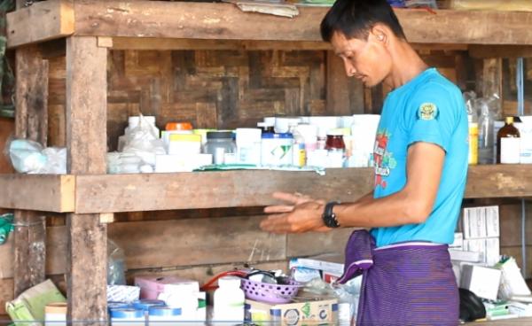 Medic Saw Baw Mu Say puts on his rubber gloves and says as he prepares to start cleaning a cut on a patients admitted to the Law Mu Thaw-Ler Mu Per...