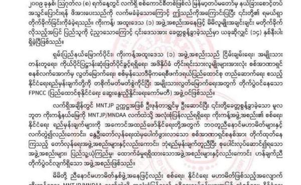 The Northern Alliance military collation groups—the United League of Arakan/ the Arakan Army (ULA/AA ) and the Palaung State Liberation Front/ Ta’ang...