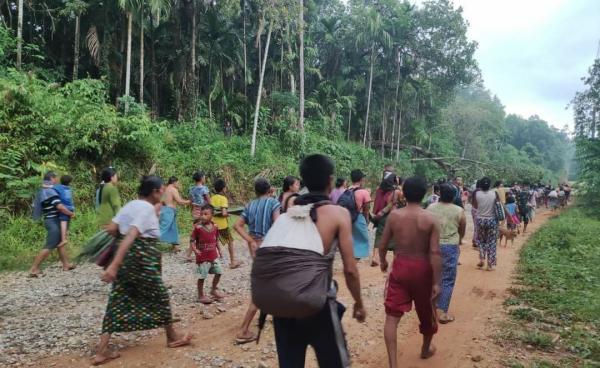 More than 3,000 residents of six villages are fleeing as the junta troops fire artillery shells into the villages in Brigade 3 of Nyaunglabybin...