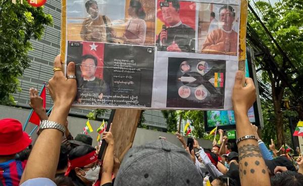 The regime troops, on the tip-off from an informant, beat and arrested over ten youth strikers and residents during a public pledge in Yangon on July...