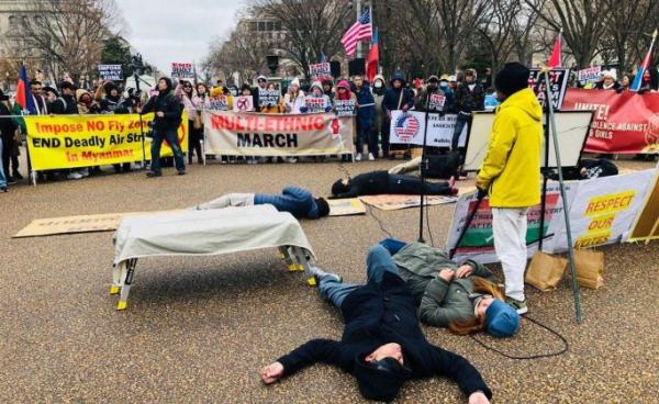 People of all ethnicities from Myanmar demonstrated in front of the White House in Washington DC on 25 February. The demonstrators were calling for...
