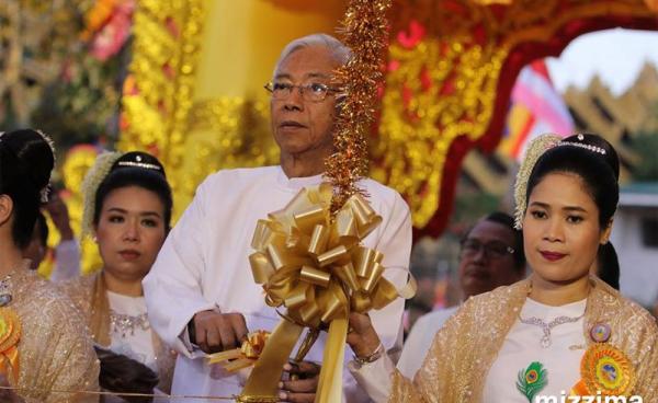 Myanmar President Htin Kyaw attended a New Year's Day ceremony at Shwedagon Pagoda in Yangon on January 1.
