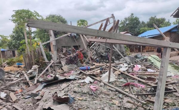 A woman was killed and three houses destroyed when a military junta fighter jet from the carried out an airstrike on Pyi Soe Aung Ward in Letpanhla...