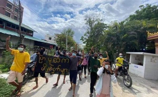 Two protesters were injured and two others were arrested when gunmen opened fire on a group of protesters called "Phoenixes in the Ashes" in Chan Mya...