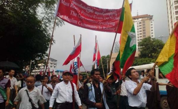 Three Burmese protesters, who led a demonstration against the use of Muslim community terminology (in Arakan State) in Yangon on 10 July were...