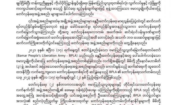 On April 17, the Three Brotherhood Alliance issued a congratulatory message on the occasion of the 2nd anniversary of the Bamar People’s Liberation...