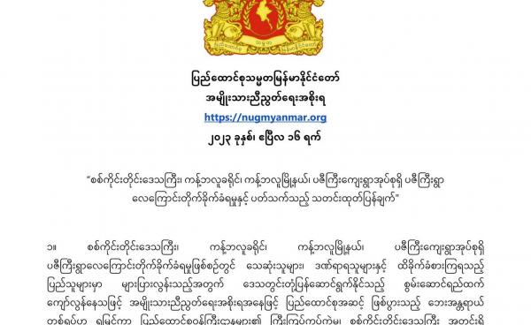 National Unity Government (NUG) stated on 16 April that 40 children (under the age of 18) were killed among 168 victims on 11 April Pazigyi village...