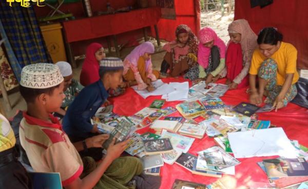 Members of Alin Thaset (A piece of Light) library at 4 mile ward of Maungdaw township in Rakhine State have initiated a mobile library program under...