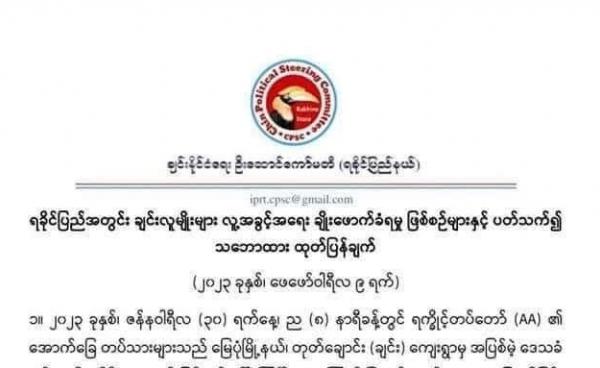 On January 30, 2023, at around 8:00 p.m., Arakan Army (AA) soldiers summoned two local Chin residents from Tokechaung (Chin) village of Myebon...