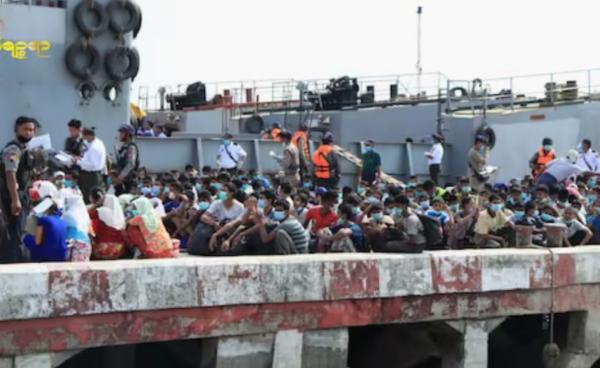 Photo: Muslims released from Yangon under an amnesty arriving in Sittwe, April 2020. The junta intends to provide 45 days of military training to...