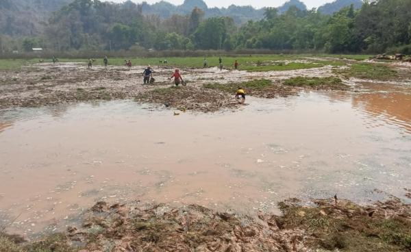 Water levels in the Nan San Phoo stream in the western part of Demoso Township, Karenni State, have dropped and the water has turned brown, causing...