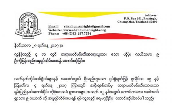 The Shan Human Rights Foundation (SHRF) is demanding the Tatmadaw release nine residents of Hopong township, including a 12-year-old boy, all of whom...