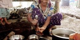 A Kachin IDP prepared for food in a temporary camp in the KIA Laiza headquarters in Northern Burma. Photo: Kachin News Group