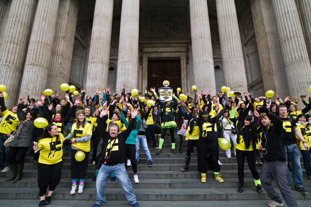 School children, teachers, students and members of dance groups donned headphones and danced to their music on their way from the London Eye landmark to Trafalgar Square to launch a new charity, ‘LearnBurma’.