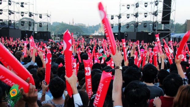 Some 70,000 Burmese embraced the country’s first international concert on Sunday night when American star Jason Mraz joined top domestic artists in Rangoon to raise awareness about human trafficking.
