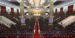 Senior monks from the nine main Buddhist sects in Myanmar at an assembly hosted by the state-sponsored State Central Sangha Organisation, at the Kaba...