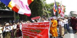 About 1,000 demonstrators staged a noisy protest outside the Bangladesh embassy in Yangon on March 26 to condemn a commentary in a Dhaka newspaper...