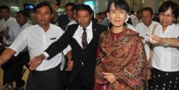 Aung San Suu Kyi strode through Yangon International Airport on Sunday waving to passengers, ending her six-day trip to neighboring Thailand and told...