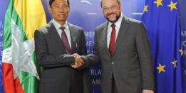 Burmese lawmakers, headed by Lower House Speaker Shwe Mann, visited the European parliament on Thursday, the first ever visit by Burmese officials.