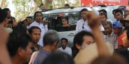 Aung San Suu Kyi was met by more angry villagers as she returned from Sel Tel, where she had been blocked in a Buddhist Chapel by protesting...