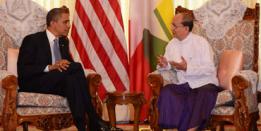 Burma's President Thein Sein (right) meets US President Barack Obama in Rangoon in November last year. (Photo: President's office)