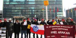 Around 30 Arakanese gathered to stage a protest in front of the UN building in New York, USA, on the anniversary of the fall of Arakanese sovereignty...