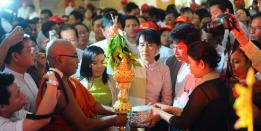 Yangon: NLD president Daw Aung San Suu Kyi yesterday visited an Arakanese monastery, a Lodaw Pyi, in Yangon to worship the 11.50 viss golden tiered...
