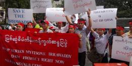 Kuala Lumpur: Nearly one hundred Burmese held a demonstration on Thursday against the dam at Myitsone, the confluence of the Irrawaddy River, in...