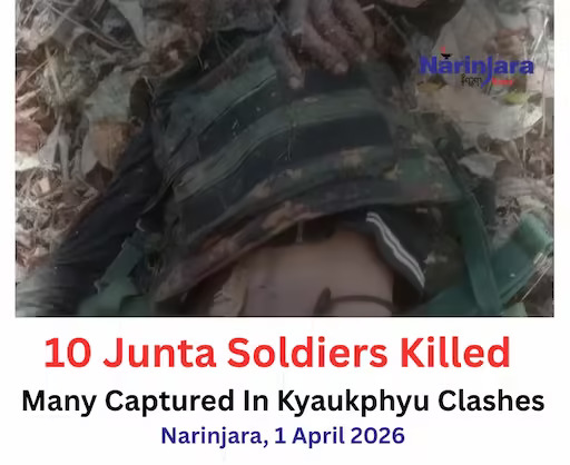 Khaing Lu Hla (Roma Mray) — The Arakan Army (AA) fighters have killed at least 10 junta soldiers and captured some others in a fierce fighting taking place in Kyaukphyu township of Rakhine State.