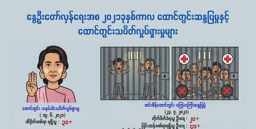 The notorious prisons known for the harshest repression after the coup include Insein Prison in Yangon Region and Obo Prison in Mandalay Region.