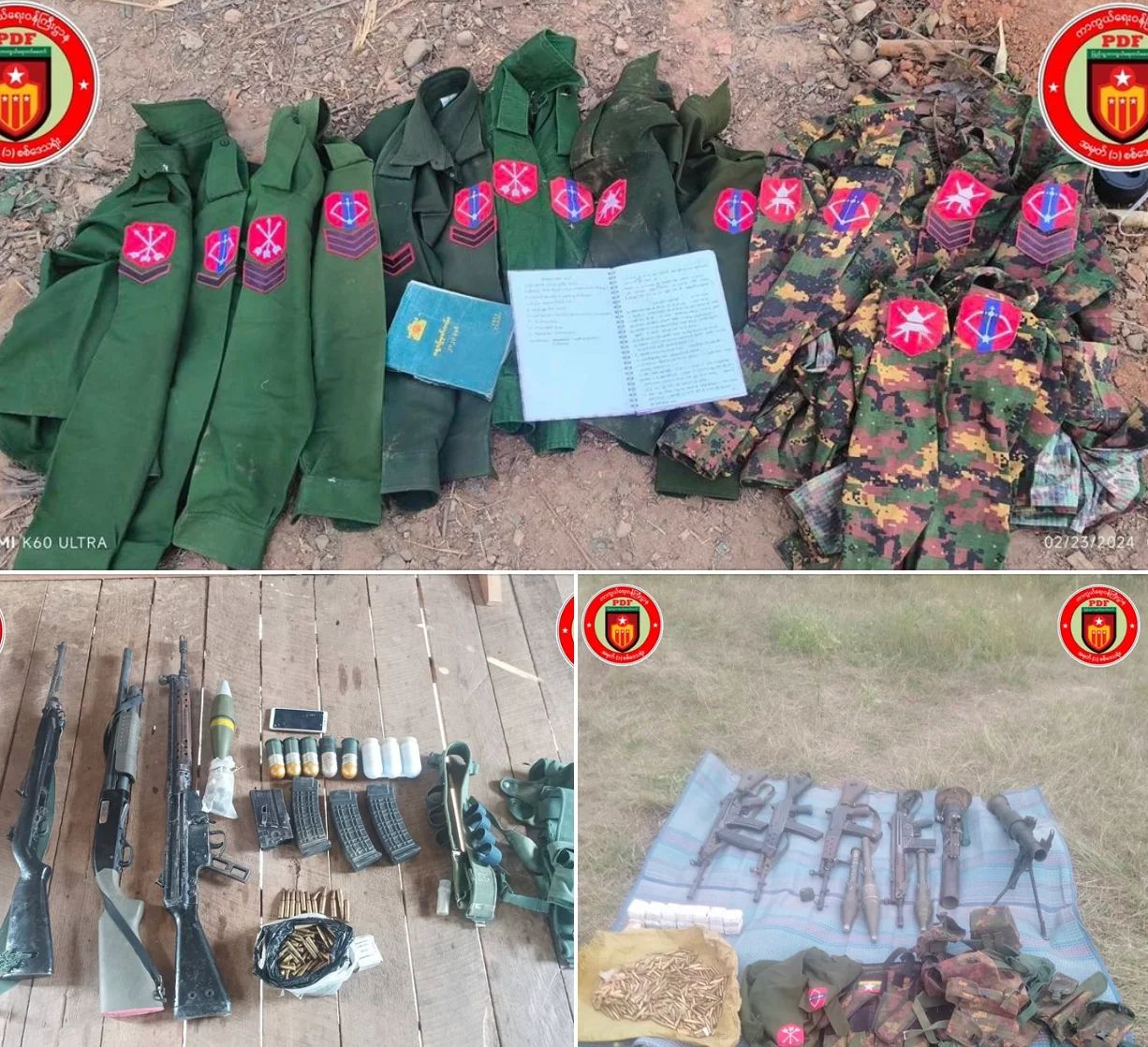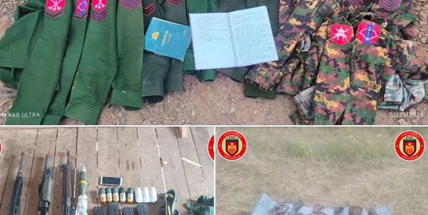 Resistance groups said they captured armaments from the Burma army during the clashes including 10 rifles, a RPG-7, a 60-mm mortar, nine grenades, 388 7.62 bullets, 641 5.56 bullets, 4 magazines and other military equipment.