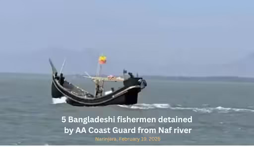 Khaing Lu Hla (Roma Mray) — Five Bangladeshi fishermen were detained by the Arakan Army (AA) coast guard from Naf river, reported Bangladeshi media outlets.